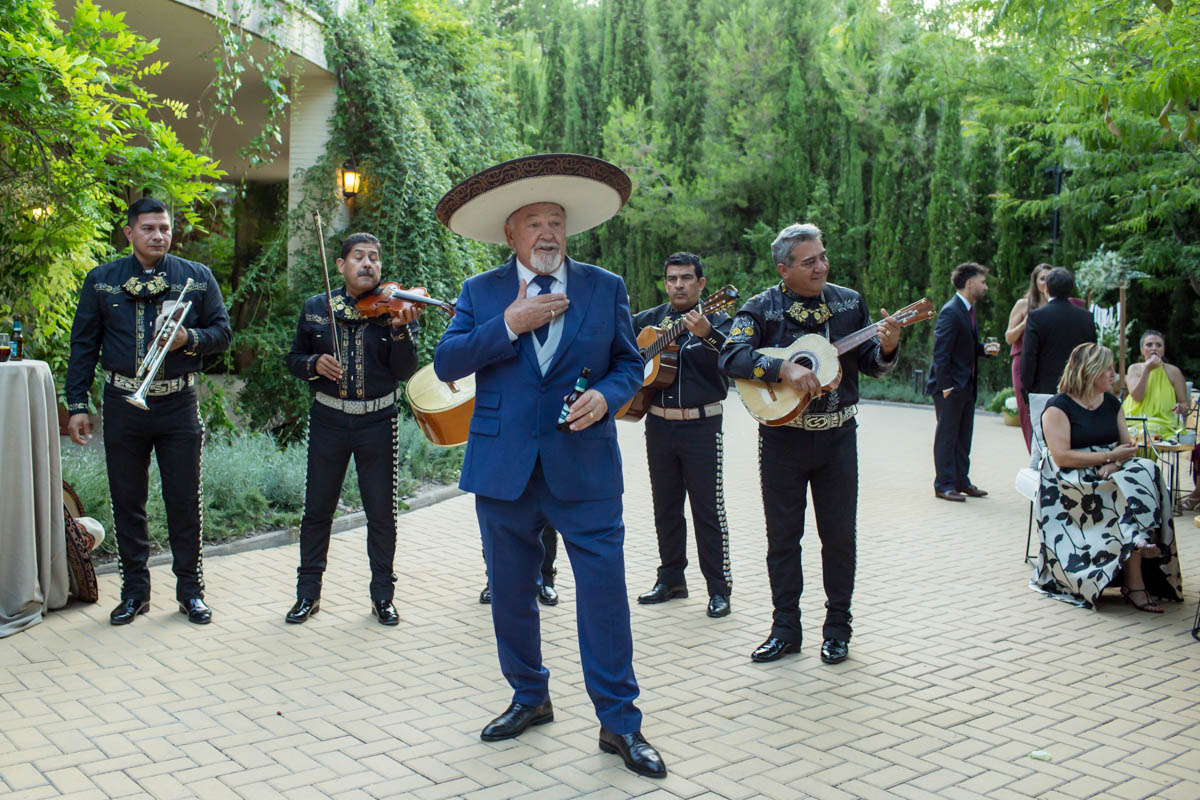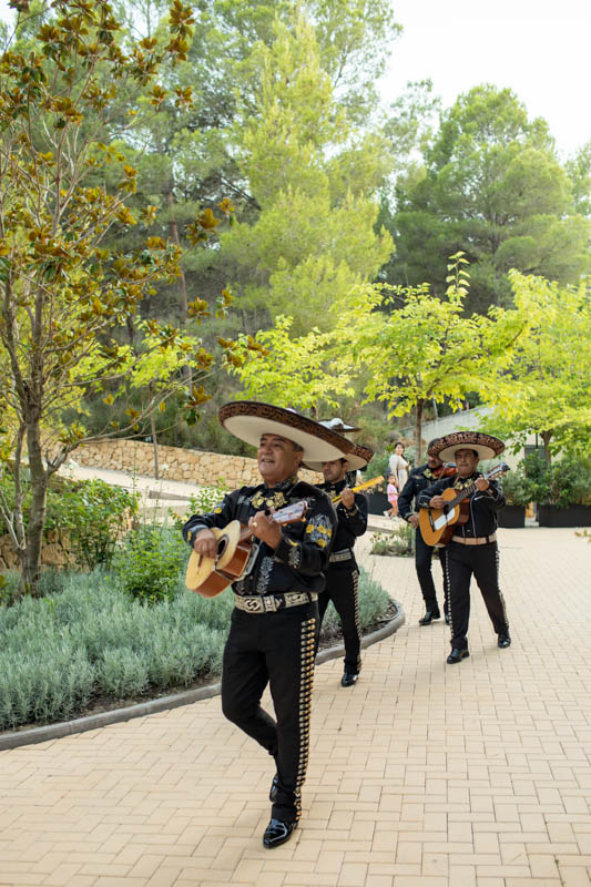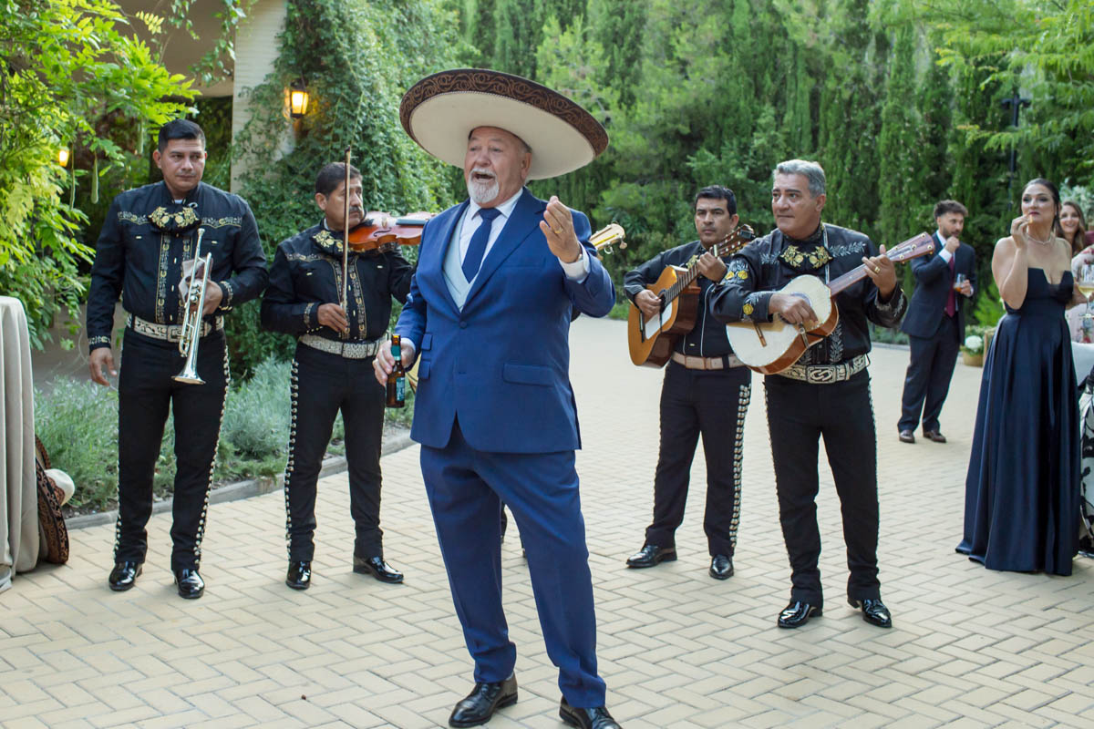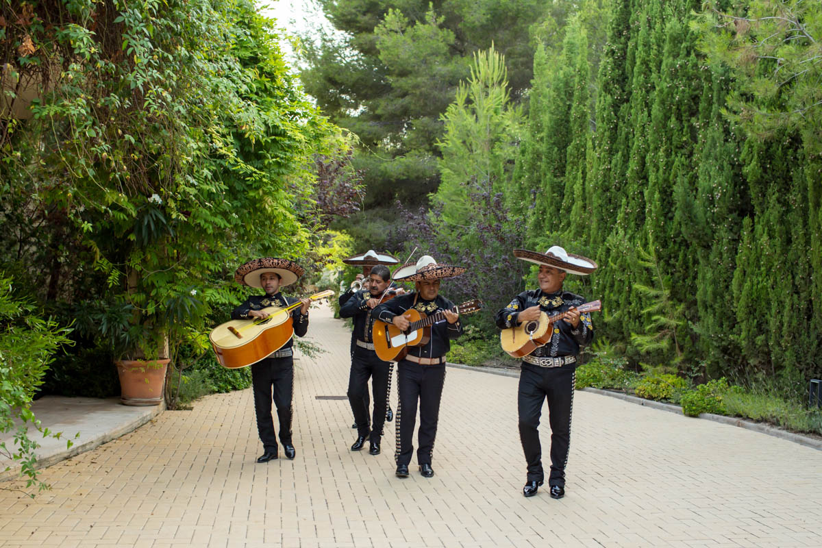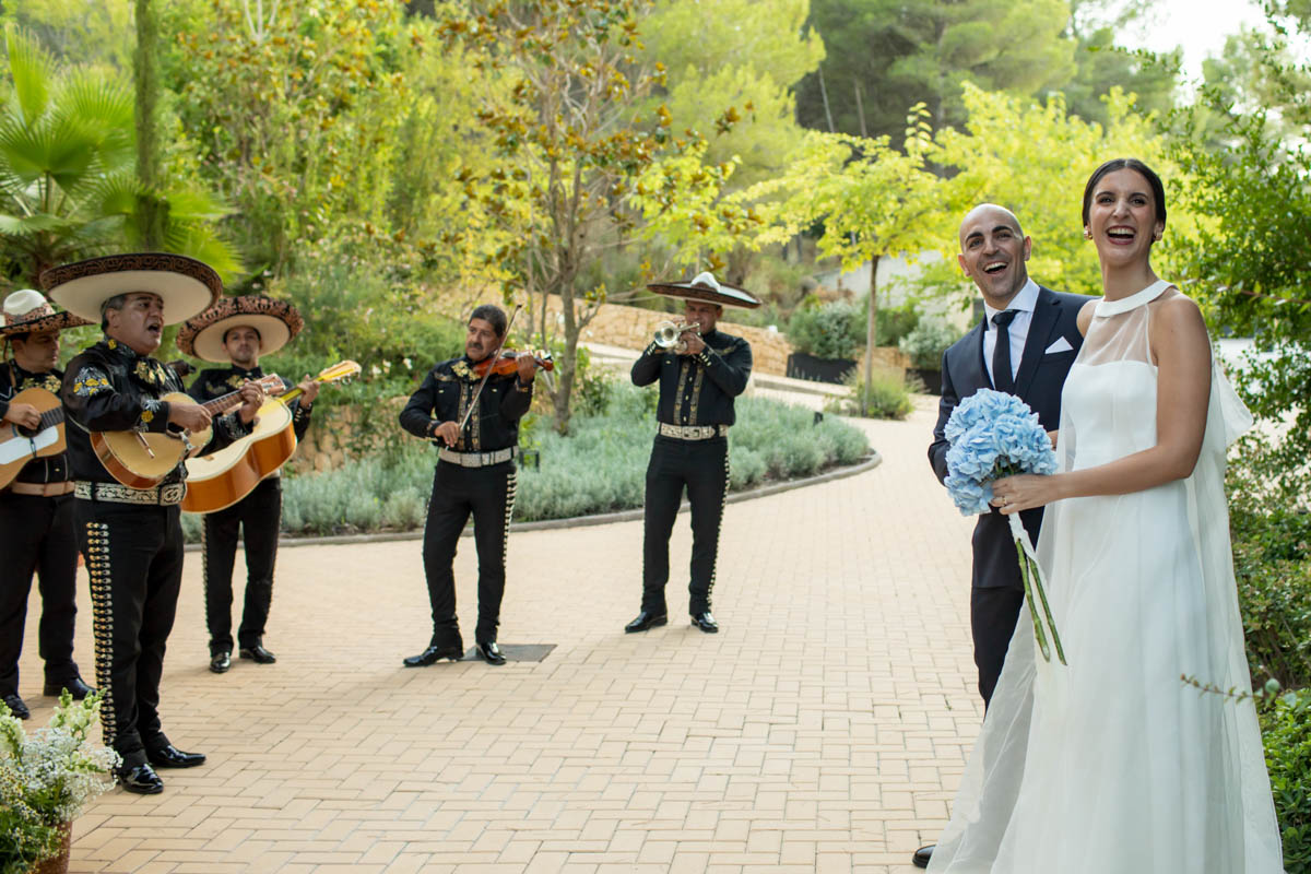 Al terminar la ceremonia, nos escapamos unos minutos para hacer unas fotos de pareja, pero María José es una caja de sorpresas y tenía mariachis esperando para darlo todo durante el cóctel y Pablo que le encantan se llevó un sorpresón.